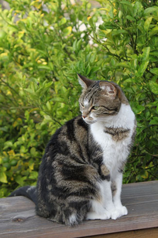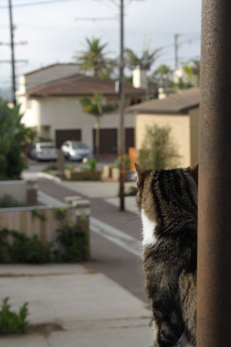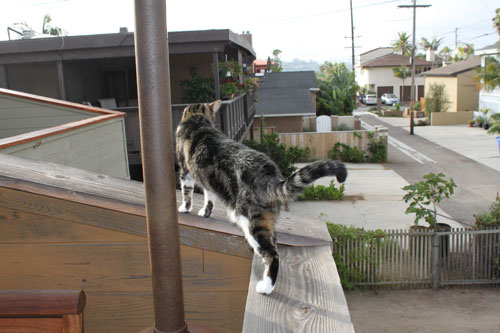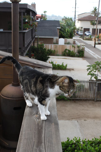 Around 11am, I like to go outside on the patio in the back of my house and look for the neighbor kitty. Her name is Teardrop and we are friends (kind of.) Here are some photos of me doing my thing on the back deck overlooking the alley.